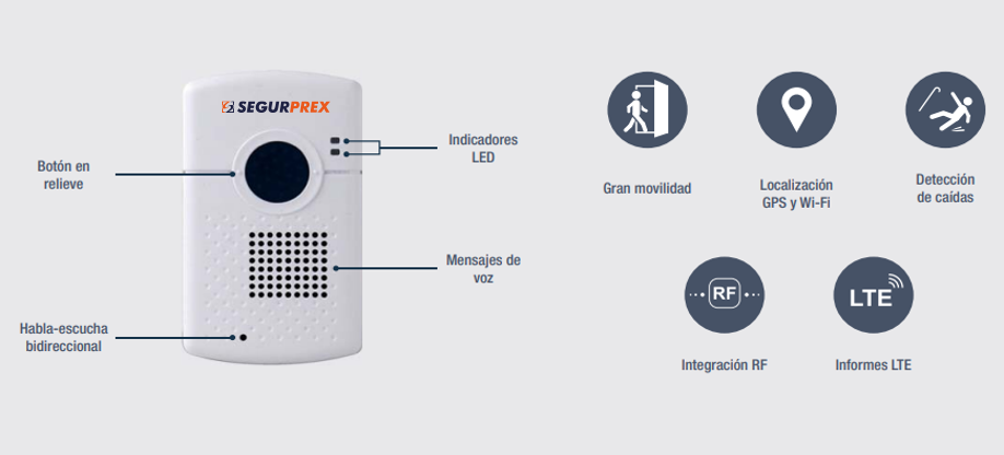 Solución integral de alarma médica para el bienestar y la seguridad personal que une el monitoreo de la salud médica y la alarma de emergencia para mantener a las personas mayores seguras en sus propios hogares.