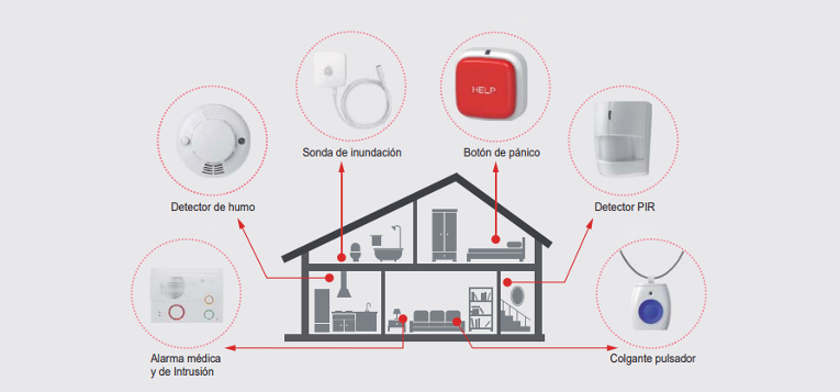 Solución integral de alarma médica para el bienestar y la seguridad personal que une el monitoreo de la salud médica y la alarma de emergencia para mantener a las personas mayores seguras en sus propios hogares.